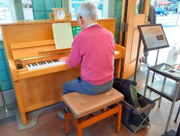 次にピアノの前に座ったのは、シニアの男性。高校生まで続けたピアノを、40年ぶりに再開したとのこと。この日は時間があったので、中央線で八王子方面に行く途中で下車し、弾きに来たそうです。