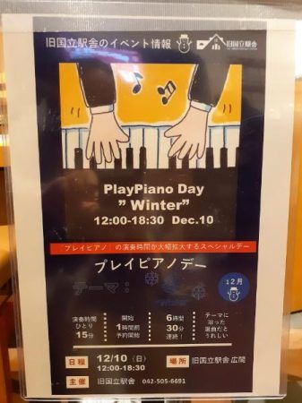12月10日(日)は月1回開催される、「プレイピアノデー」でした。 この日は演奏可能時間が、正午から18時30分までの6時間半に拡大されます。そして毎月異なる選曲のテーマが設定されるのですが、12月は季節にちなんで「冬(“Winter”)」です。