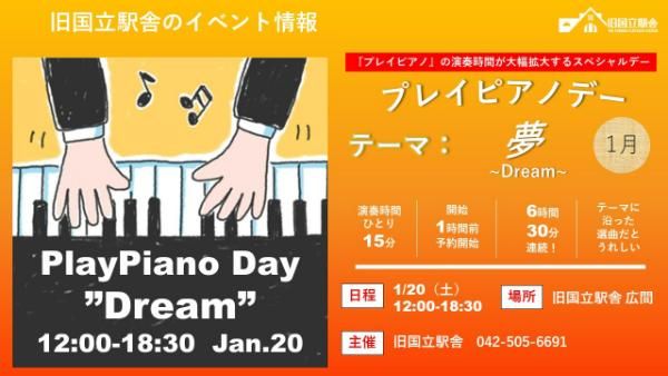 「プレイピアノデー」は新年1月20日(土)にも開催予定で、テーマは「夢”Dream“」です。初夢から連想したものでしょうか。明るい希望が広がる夢、それともはかない夢。どんな選曲の演奏が聞けるか楽しみですね。