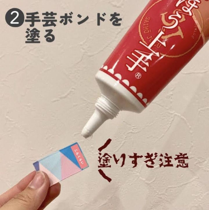 リボンの種類によっては接着剤がしっかりとくっつかない場合もあります。その場合は針と糸でリボンの端同士を縫い付けましょう。