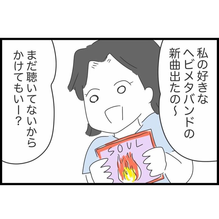 旅行当日、すみれさんは旅のお供に用意したCDがあったものの、結局友人が持ってきたヘビメタバンドのCDを流すことに…。運転中のすみれさんを気にかけることもなく、盛り上がる友人。