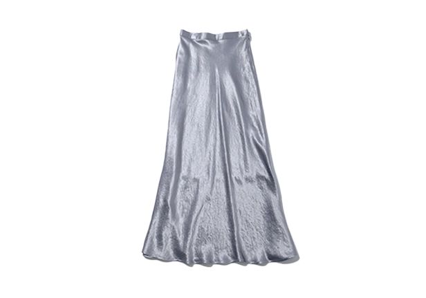 裾に向かって広がるシルエットは着ぶくれ感も皆無。サテンスカート¥19,800/Stola.