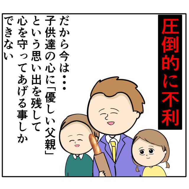 子ども達の心に「優しい父親」という思いでを残して心を守ってあげる事しかできない。