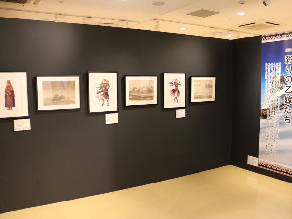 まず最初のエリアは、「彩りの乙嫁たち」。 このエリアでは乙嫁語りの単行本で使用されたカバーイラストの原画を見ることができます。
