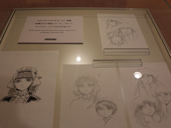 森先生が来場した際のイベントで実際に描かれたイラスト。これを話しながらサラサラと描いてしまうというから驚きです。そのイベントの映像を見ることができるコーナーもありました。