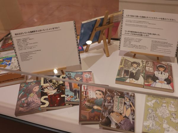 会場内のいたる所にある小さなパネルには、森先生のインタビューが。こここでは影響を受けた漫画や、漫画家になるきっかけなど森先生のパーソナルな部分に触れることができます。