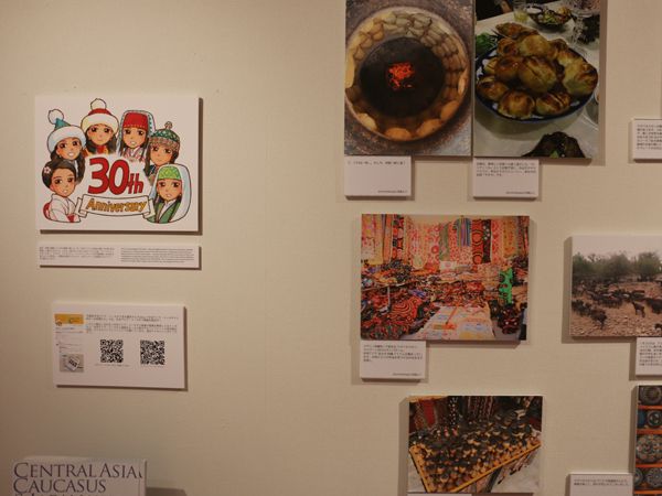 日本と中央アジア5か国の外交関係樹立30周年を記念した、外務省認定の森先生デザインのロゴマークや、各国の情報を伝えるパネル展示もありました。