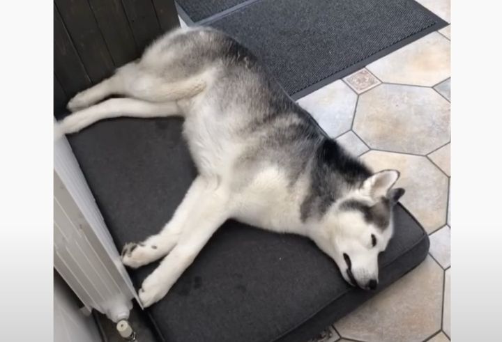 夢の中でもお散歩してる?寝ながら走り出すハスキー犬。