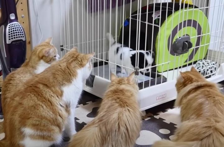 みんな興味津々。猫さん達が、じーっと見つめているのは?