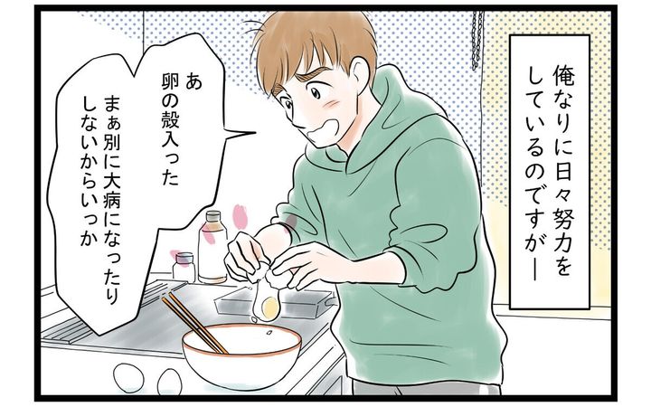 ・卵の殻、せめて「ごめん、入っちゃったって思ったんだよね。できるだけ取ったんだけど…まだあったんだね」と言えばいいのに…