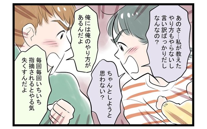 直樹は出来ないなりに努力している自分を褒めてほしいのですが、妻はまず失敗を怒ります。それは事前に注意しているにも関わらず、自己流で