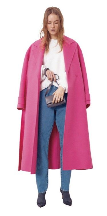 たとえばごく普通の白トップスとブルーデニム。着方によっては手抜き感も出てしまう組み合わせに欲しいのは、都会的に引き上げるアクセント。そこで起用したいのが鮮やかなピンクのカラーコート。着慣れたスエットとデニムに鮮度と高揚感を。