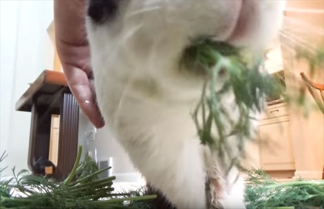 すると、目の前に置かれた好物のディルをすぐさまに口に入れ込みました!