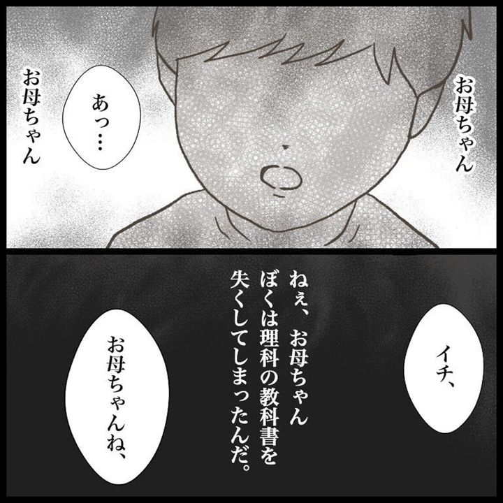 母子二人の母子家庭で育つイチくん。お互いを思いやる素敵な親子関係ですね。しかし、イチくんにとってはそれが負担となり、お母さんに教科書をなくしたことを打ち明けられずにいました。