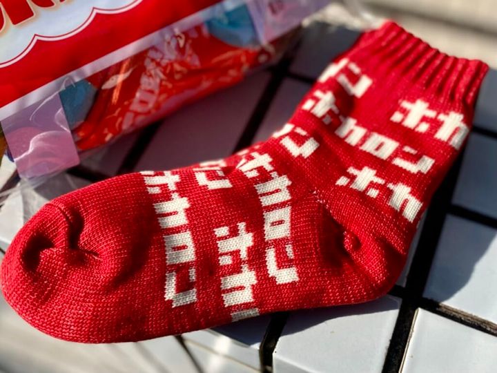 ザ・ホカロンなイメージのレッド×ホワイトのソックス。紅白のカラーリングは新年のめでたさも演出している気がします。