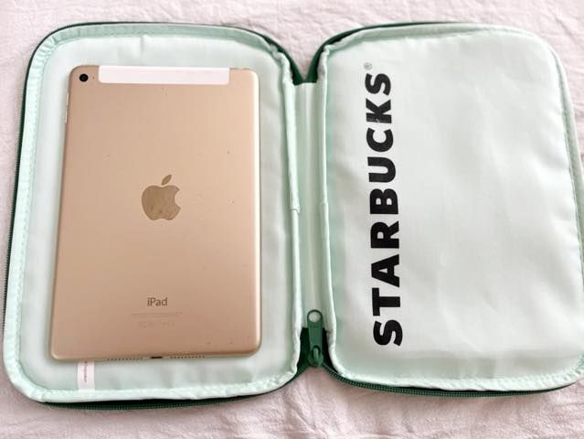 iPadminiは余裕で入りました。iPadなら11インチまで入る仕様の様です。リバーシブルなので、裏の緑を表にして使用することもできますよ。これは店頭でもあまり見ることのないレアアイテムです。