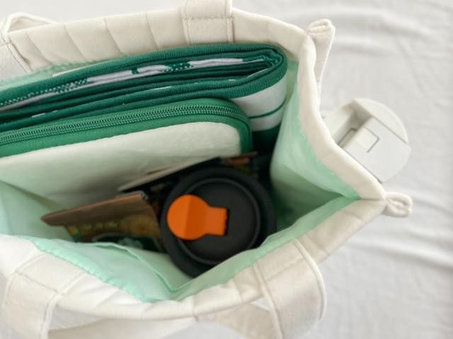 グッズを一式入れてみましたが、それでもまだまだ余裕がある位たっぷりとしたマチがありました。小さいポケットがあるのも嬉しいところ。キャンパストートとしても活躍しそうですね。