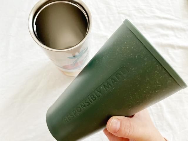 こちらはもみ殻が主成分の樹脂からなる環境に配慮したタンブラーです。よく見ると独特な模様があり、「RESPONSIBIY MADE」と書いてあります。お値段がついており、本体価格2600円でした。