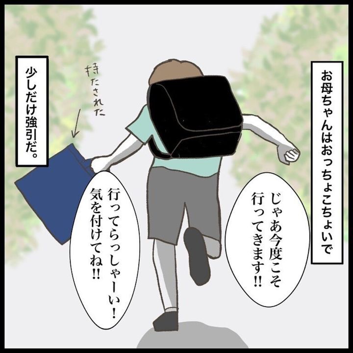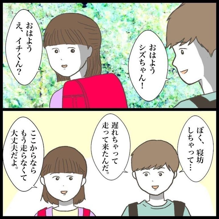 お母さんの優しい親心も、子どもからすると強引でちょっと迷惑な時もあるようです。イチくんが走って学校に向かっていると、偶然クラスメートのシズちゃんに会ったので一緒に登校していたら…。