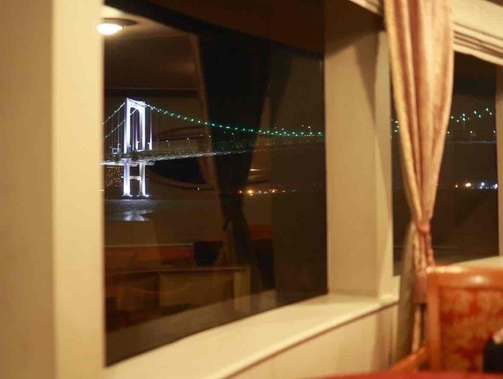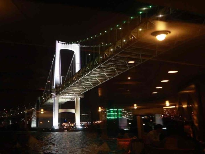 出典:MORE食事中にレインボーブリッジの下を通過。ライトアップされて華やか。