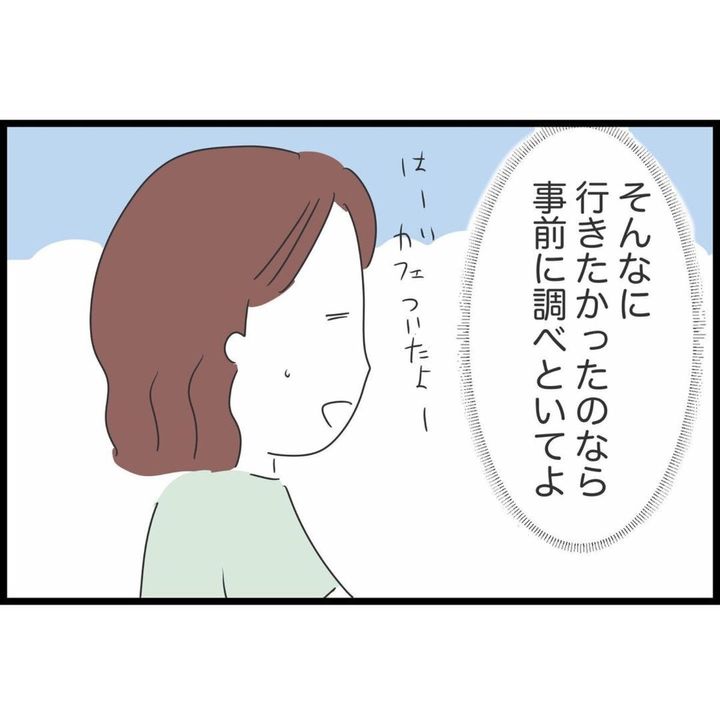 すでに通り過ぎているのに、思いつきで行きたいお店を言い出す友人。事前に計画を立てているすみれさんにとっては、ちょっとしたイライラの種のようです。