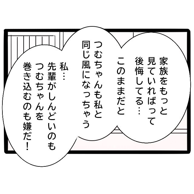 「家族をもっと見ていればって後悔してる・・。このままだと、つむちゃんも私と同じになっちゃう。