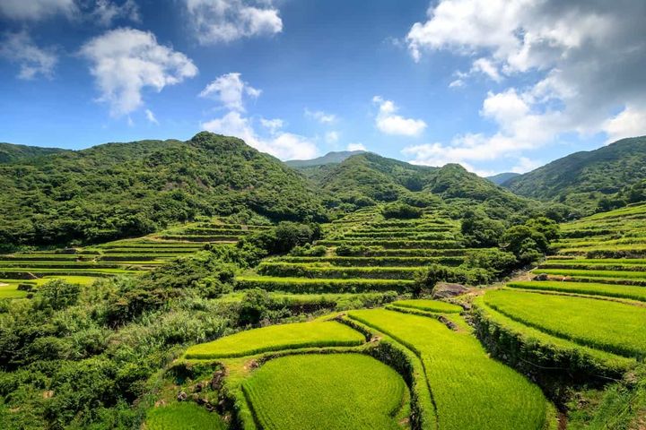 また、2010年に国の重要文化的景観に選定された「平戸の聖地と集落(春日集落と安満岳)」も見どころのひとつ。標高約534mの安満岳の裾野から海に向って広がる棚田は圧巻です。安満岳は神、仏、キリシタンが存在する平戸島の聖地で、安満神社のほか、廃寺となった西禅寺、教会の痕跡が残っています。