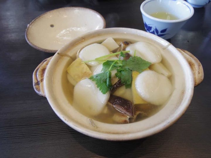 加えて、島原地方を訪れたら味わいたいのが、土鍋で作る「具雑煮」です。山の幸、海の幸がふんだんに入った雑煮で、食べ応え十分! 鶏肉、アナゴ、シロナ、レンコン、ゴボウ、凍り豆腐、椎茸、卵焼き、丸もち、春菊など十数種の具材が使われるのが一般的なのです。