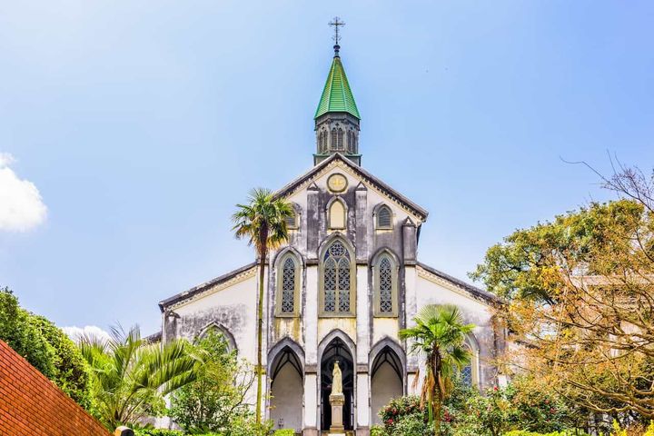 さらに1864年、パリ外国宣教会のフランス人司祭らにより創建されたカトリック教会「大浦天主堂」もぜひ訪れたいスポット。美しいステンドグラスが施された、現存する国内最古の教会建築です。1879年に増改築が行われ、内部、外観ともにゴシック調に統一されました。
