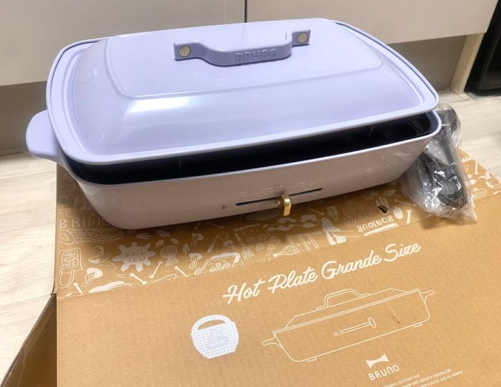 BRUNO「2024年 グランデ福袋」の大目玉商品は、大きめサイズのホットプレート! カラーはランダムということでしたが、筆者のもとへはシーライラックが♪ パステルカラーのブルーのようなパープルのような絶妙なカラーリングが可愛すぎる!! 収納せず、ずっとテーブルの上に置いておきたいくらいにおしゃれです。