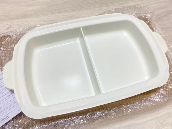 待望のオプションパーツ。仕切りのついたセラミックコート鍋で、同時に2種類の料理を作って食べることができます。食卓やパーティシーンでも大活躍の予感!!
