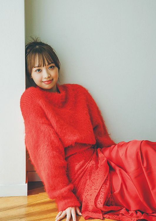 禁断の印象があるオール赤コーデもニットのやさしい雰囲気で絶妙な仕上がりに。