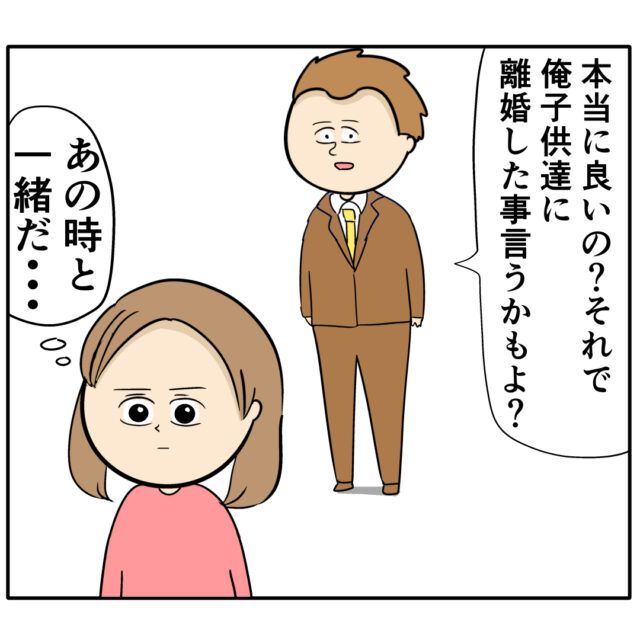 「本当に良いの?それで。俺、子ども達に離婚した事言うかもよ?」