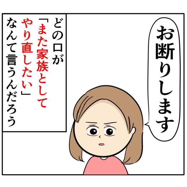 どの口が「また家族としてやり直したい」なんて言うんだろう・・。