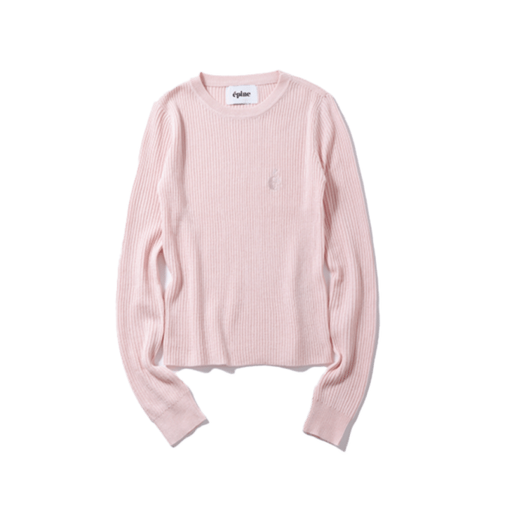 淡色のトップスならボトムを選ばず着回しやすい。さらにリブニットの縦のラインで華奢見え確実!
