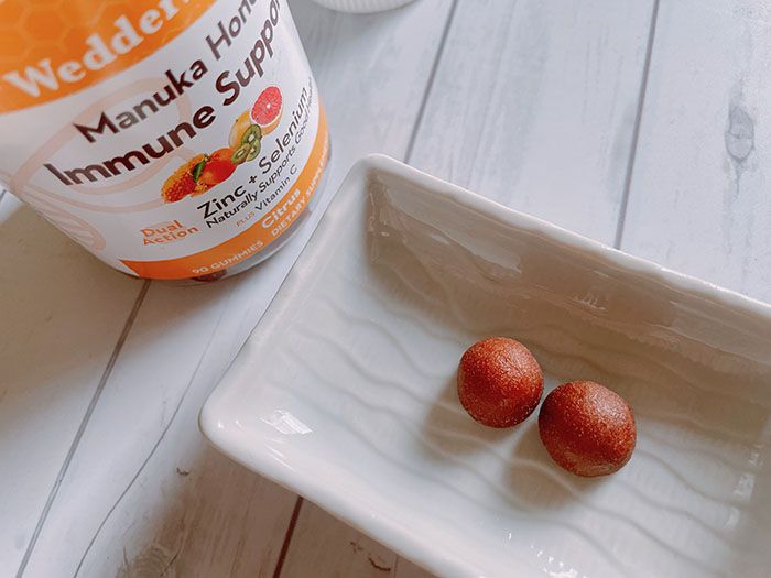 抗酸化作用や免疫力アップなどに効果的なマヌカハニーですが、そのままとったり飲み物に入れたりするのが面倒、という人でもサプリグミならいつでもどこでも食べられるので、寒さの気になる時期にピッタリです!