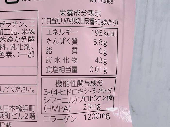 一見かわいい見た目のグミですが、BMIが高めの人の腹部の脂肪(内臓脂肪)とウエスト周囲径を減らす効果が報告されている「3-(4-ヒドロキシ-3-メトキシフェニル)プロピオン酸(HMPA)」が含まれています。