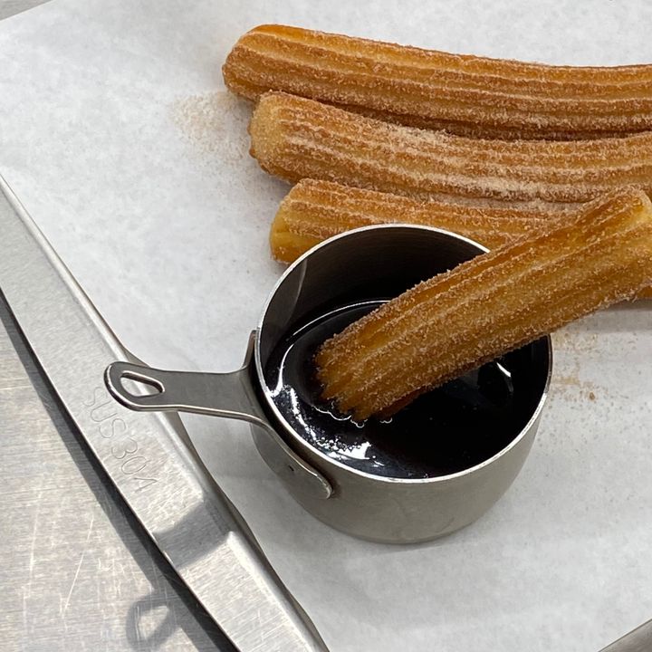 チュロスは1人4本で、ディップソースはチョコ、チリヨーグルト、レアチーズの3種類で私は今回チョコを選びました🍫