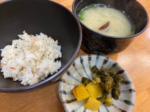 御飯は、一口サイズでお願いしました。海老と胡麻が混ぜ込まれていて、美味しかったです。貝汁も貝がたっぷりで、海の恵みを堪能しました。
