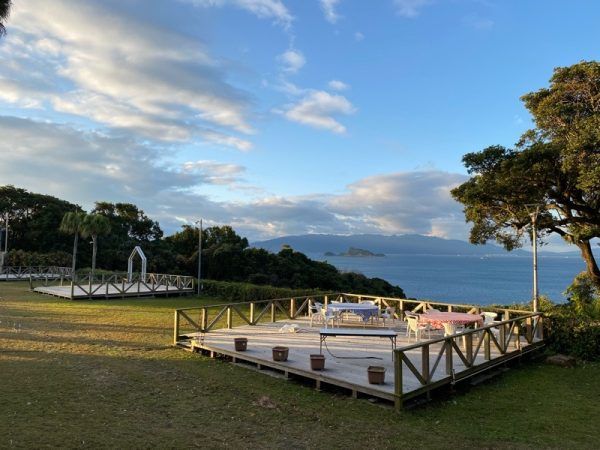 夕刻には、目の前に広がる志布志湾に、夕日が沈み美しい時間を楽しめるとのことですが…残念ながら、この日は曇り空で期待通りと行きませんでした。