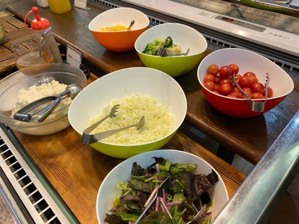 サラダ、ヨーグルト、クロワッサン、スクランブルエッグ、オレンジジュース、などの洋朝食も用意されていました。