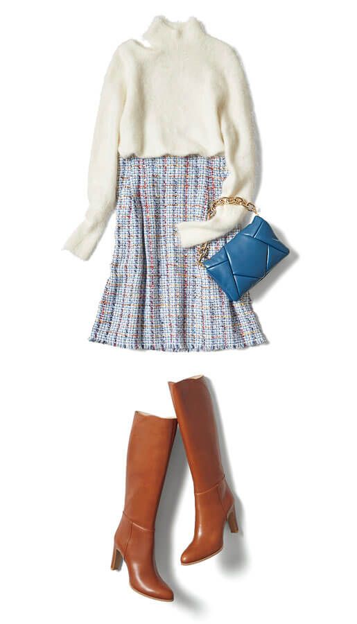 ニット¥17,600/CELFORD スカート¥35,200/ソブ(フィルム) バッグ¥14,850、靴¥46,200/ともにダイアナ(ダイアナ 銀座本店)