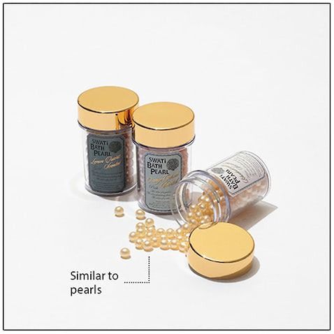 【POINT】真珠のような粒を湯船に入れるとお湯が乳白色に変化。パールがとけ出すとともにローズやアプリコット、シトラスなどのラグジュアリーな香りももたらしてくれるので、癒しのバスタイムを堪能できる。ミネラルオイル配合でしっとりとした肌に。