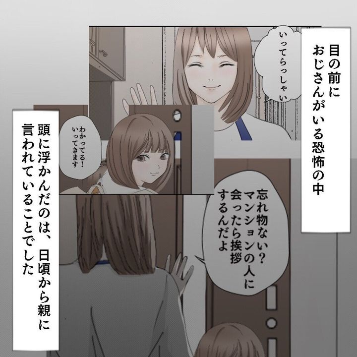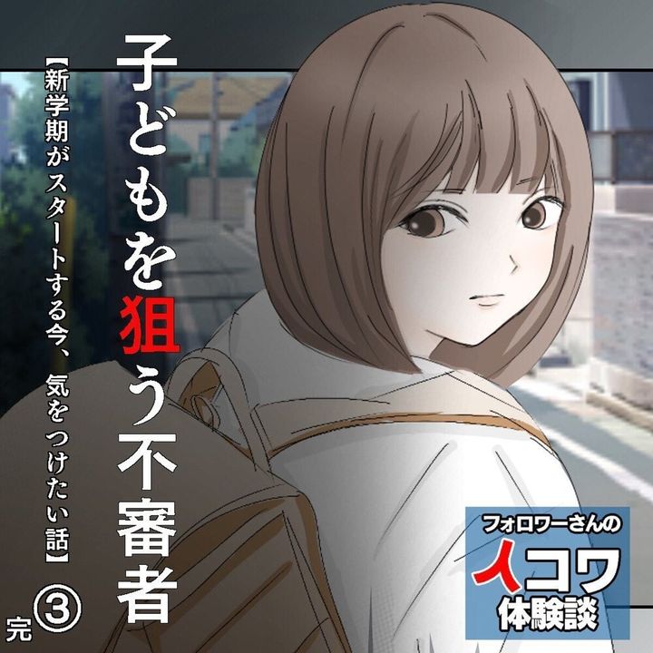 不審者に自宅エントランスまで追いかけられてしまったあん子(@anko3s)さんのフォロワーさん。彼女は血の気が引くほどの恐怖に陥りますが、ある言葉を思い出します。彼女が思い出したある言葉とは意外なもので…?『子どもを狙う不審者』最終話をごらんください。