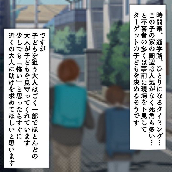 ※子供を狙っている大人もいるが、ほとんどの大人がみんなを見守っていることも最後に伝えてください。