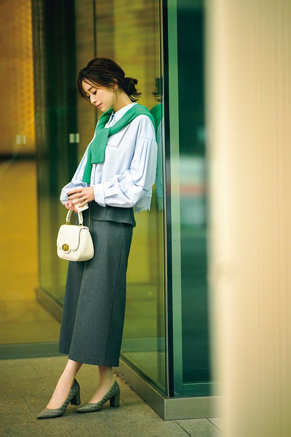 優しげにも都会的にもまとえるグレーをスカートに投入!