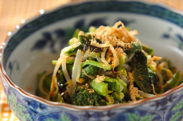 余りがちなきな粉を野菜和えに使う新しいアイデアレシピです。カルシウムが豊富な小松菜に大豆イソフラボンが豊富なきな粉とミネラル豊富なのりでプラス。栄養価の高いおかずに仕上がります。