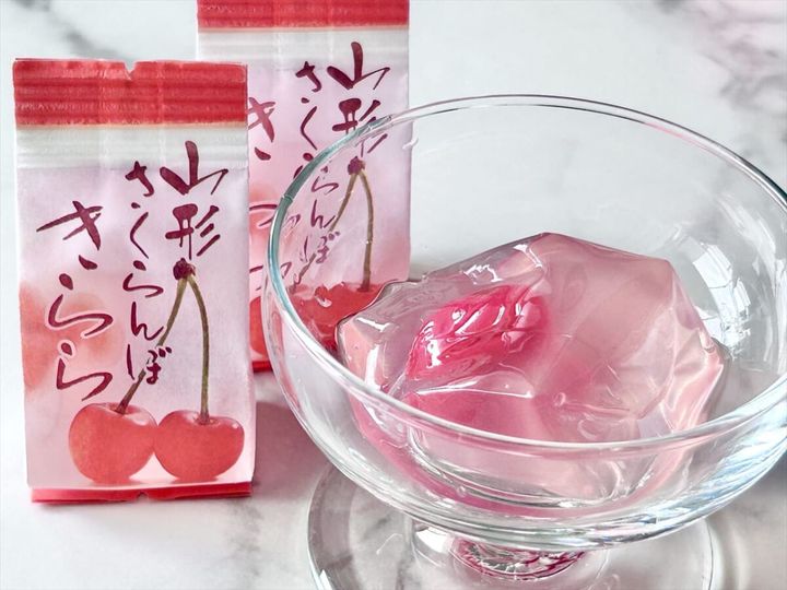 さくらんぼの生産量、日本一の山形県。今回は、さくらんぼを丸ごと使用したゼリー「山形さくらんぼきらら」を紹介します。個包装されているので、ばらまき土産にもおすすめ。ぷるんとしたゼリーとともに、甘酸っぱいさくらんぼを気軽に楽しめるおすすめ土産「山形さくらんぼきらら」を実食ルポでお届けします。