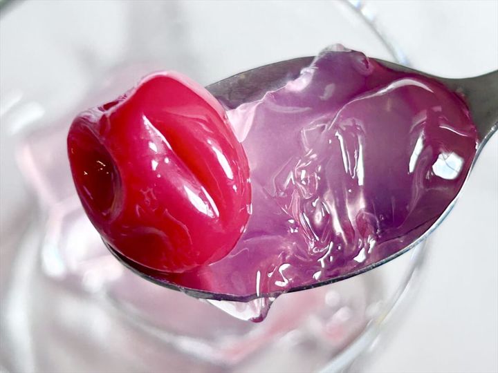 ゼリーは、思ったより弾力があり、ムチムチ。爽やかな甘みで、ジューシーなさくらんぼによく合います。