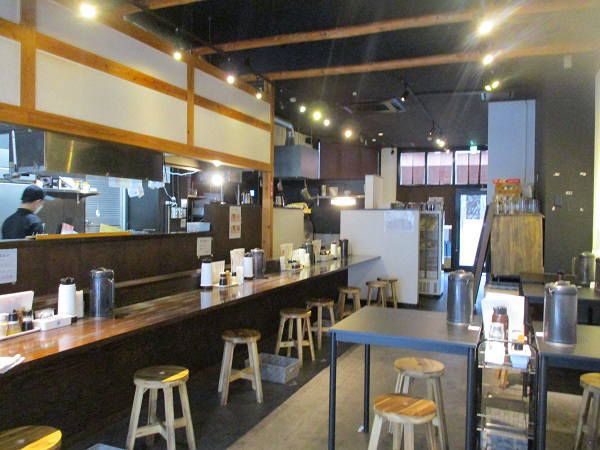 入口を入って、すぐ左に券売機があります。 カウンター席とテーブル席があり、ゆったりと座ることができます。